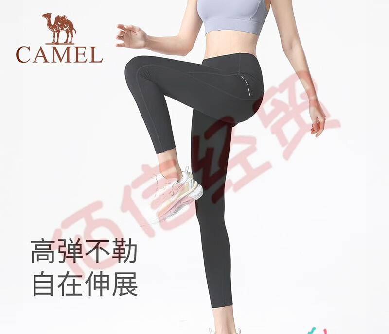 駱駝(CAMEL)瑜伽褲女高腰健身褲訓練瑜珈褲彈力運動褲提臀緊身褲跑步褲子 Y23BA06015,幻影黑 S 自營