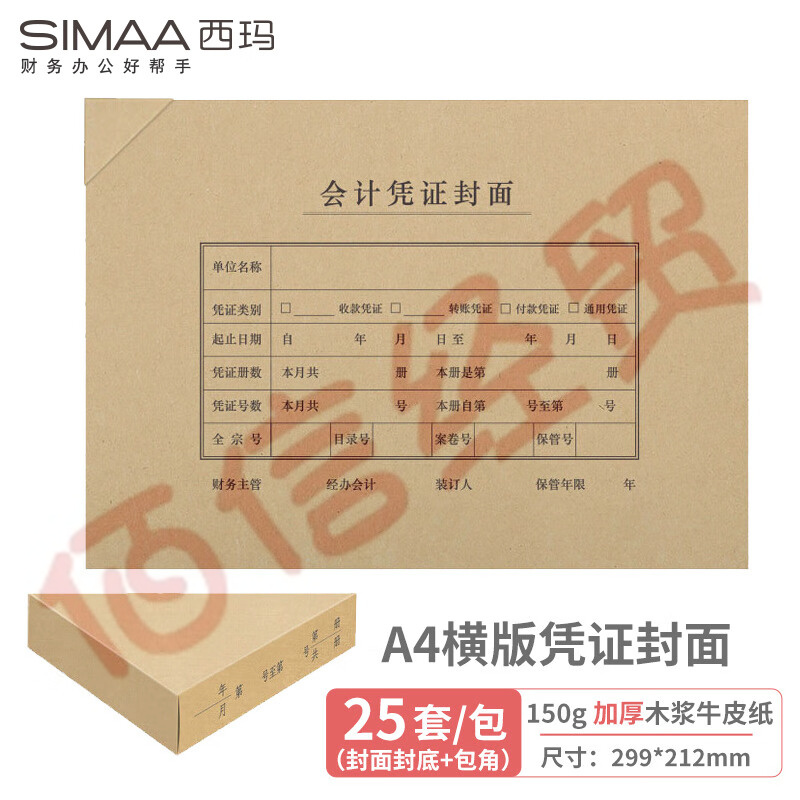 西瑪(SIMAA)A4憑證封面套包25套(封面+包角)加厚木漿150g 299*212mm 配套a4記賬憑證紙費用報銷粘貼單據(jù)6504B;封面+包角25套/包,10包/箱(單包價-整箱售-拍25組) 自營