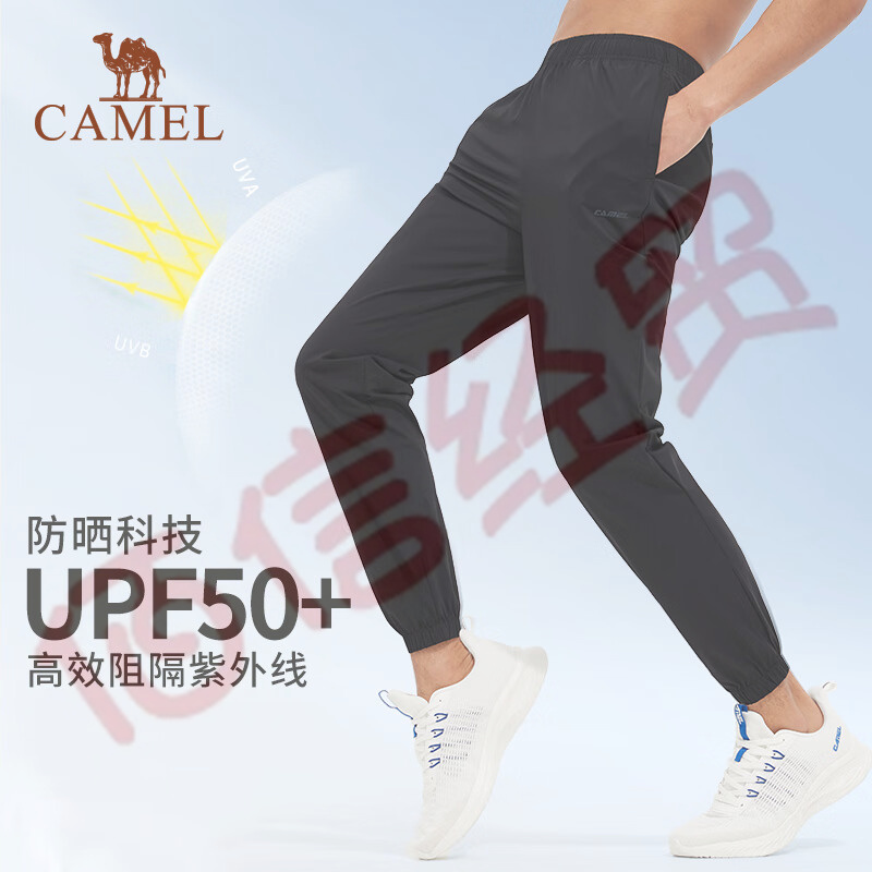 駱駝(CAMEL)冰絲防曬運(yùn)動(dòng)褲男2023春夏衛(wèi)褲薄款零感防曬UPF50+冰感速干長(zhǎng)褲 6670-2,幻影黑,男(束腳)(尺寸咨詢客服) 自營(yíng)