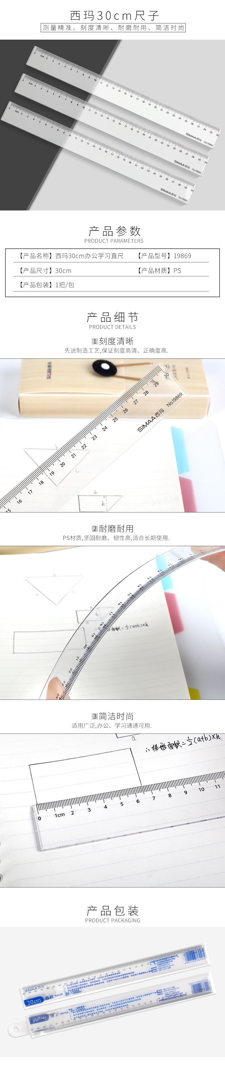 西瑪(SIMAA)30cm辦公尺子 學生文具繪圖直尺 19869(10個起售) 自營