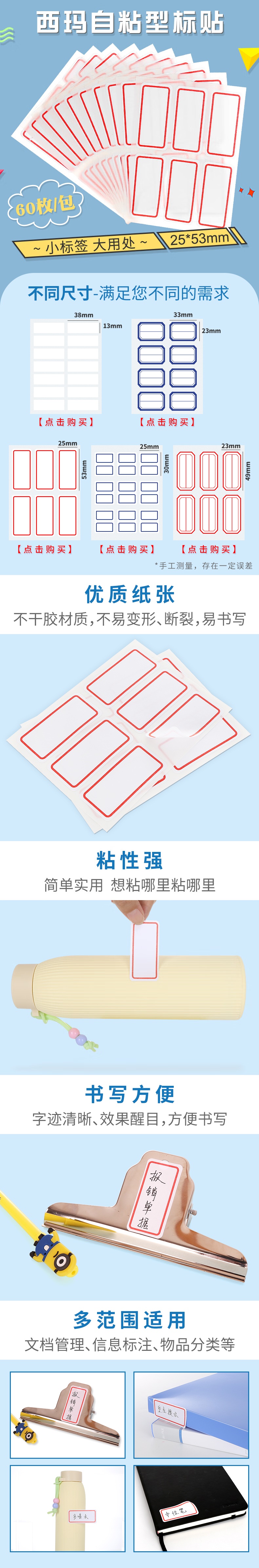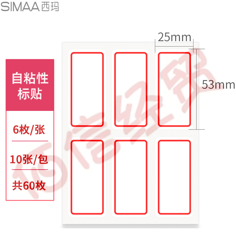 西瑪(SIMAA)25*53mm標簽貼紙口取紙 不干膠自粘性標貼10張/包 8453(10個起售) 自營