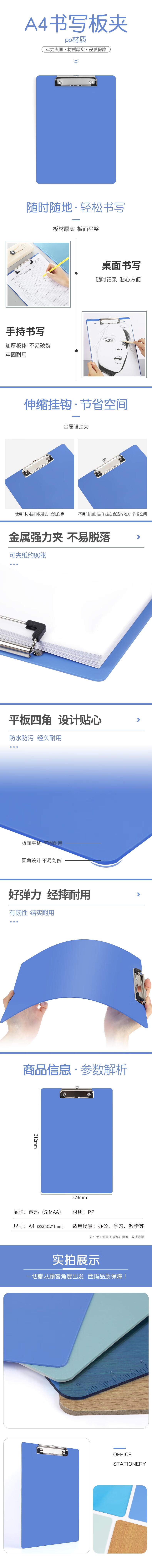 西瑪(SIMAA)A4書寫板夾PP 金屬強(qiáng)力夾文件夾 多功能寫字墊板 簡約硬質(zhì)會議夾8624(10個(gè)起售) 自營