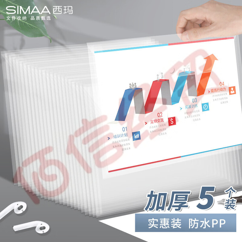 西瑪(SIMAA)5個裝 A4按扣學生透明文件袋 條紋加厚 防水試卷資料收納袋 辦公文件檔案袋 文具 6802 自營