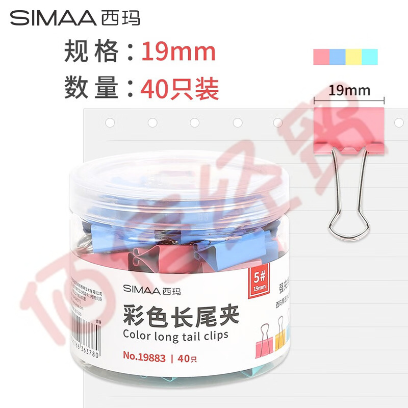 西瑪(SIMAA)40只彩色長尾夾票夾19mm 燕尾夾辦公用品19883(5個起售) 自營