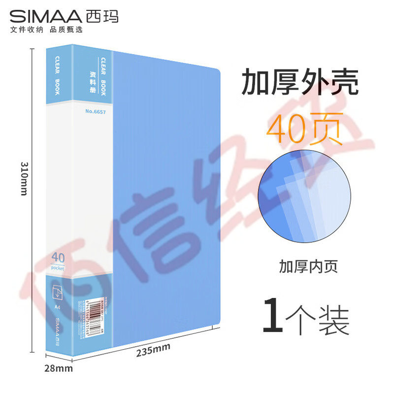 西瑪(SIMAA)A4/40頁(yè)資料冊(cè)/插袋文件冊(cè)/活頁(yè)文件夾/文件收納袋 1只 辦公用品6657(10個(gè)起售) 自營(yíng)