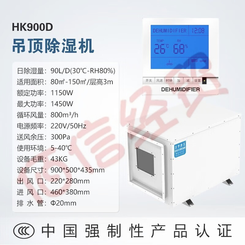 美資森美(MEIZISENMEI) 吊頂除濕機壁掛式工業(yè)中央抽濕機地下室管道除濕器吸頂式 HK900D 日除濕量90L/D 自營