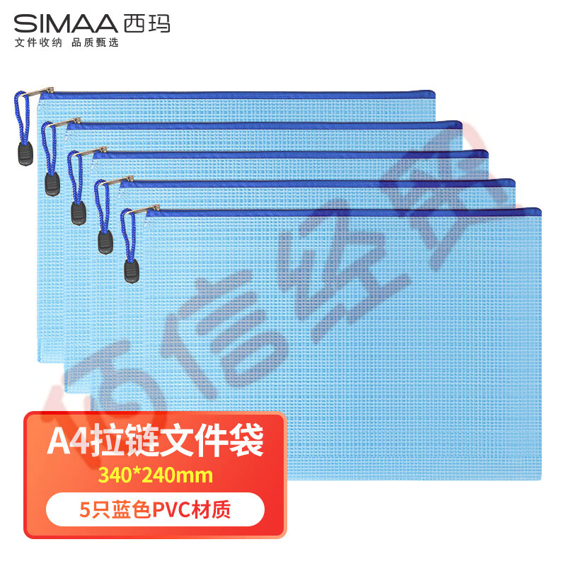 西瑪(SIMAA)5只藍(lán)色A4拉鏈袋 軟質(zhì)文件袋 防水資料袋 辦公收納袋6790 自營(yíng)