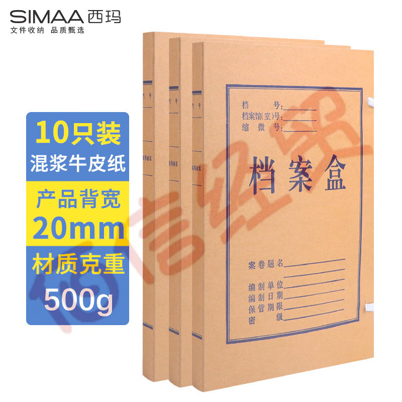 西瑪A4牛皮紙檔案盒2cm 國產(chǎn)???00克 220*310*20mm 10個/包 20包/箱(整箱售)6734 自營