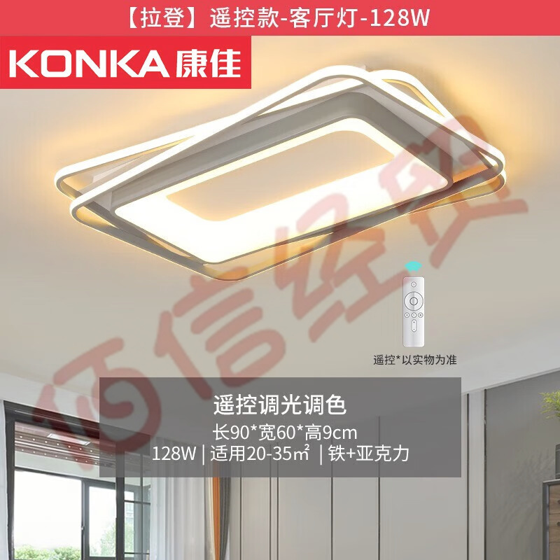 康佳(KONKA)客廳LED吸頂燈北歐現(xiàn)代客廳餐廳燈飾客廳線條燈具全屋套餐 拉登 128瓦-遙控調(diào)無極光調(diào)色客廳燈 自營