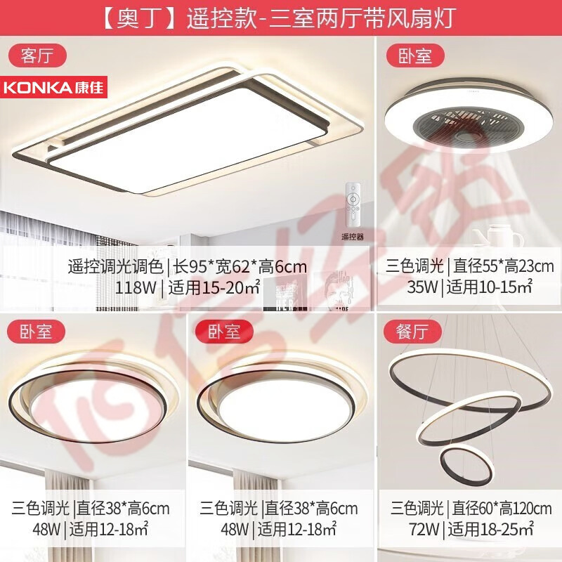 康佳(KONKA)吸頂燈后現(xiàn)代高端薄客廳臥室餐廳燈具燈飾套餐 【奧丁】三室二廳(帶鳳扇) 自營(yíng)