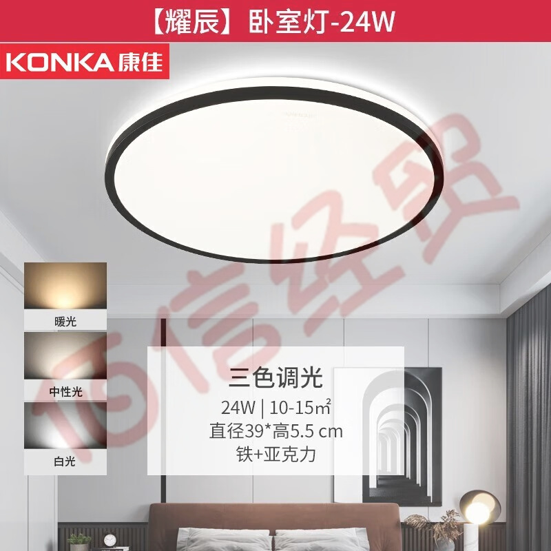 康佳(KONKA)客廳燈LED吸頂燈客廳臥室書房餐廳燈超薄燈飾北歐現(xiàn)代燈具 耀晨 【耀辰】24瓦-三色調(diào)光圓臥室燈 自營(yíng)