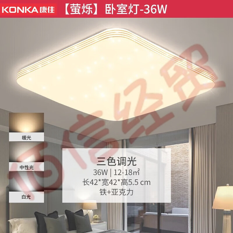 康佳(KONKA)客廳燈臥室護(hù)眼吸頂燈書(shū)房?jī)和糠浪{(lán)光防頻閃led 三色調(diào)光方臥室燈 自營(yíng)