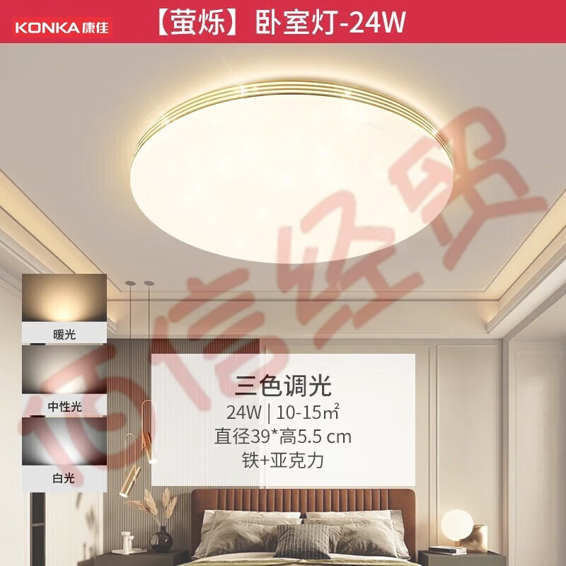 康佳(KONKA)客廳燈臥室護(hù)眼吸頂燈書房兒童房防藍(lán)光防頻閃led 三色調(diào)光圓臥室燈 自營