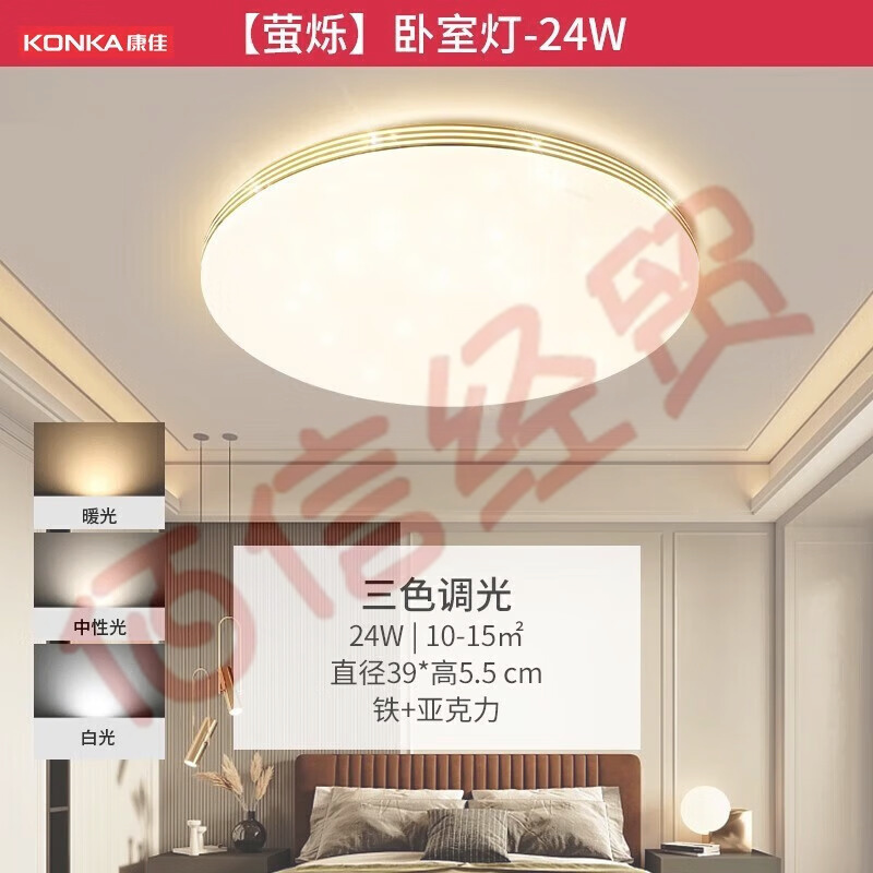康佳(KONKA)客廳燈具led吸頂燈具套餐臥室現(xiàn)代簡(jiǎn)約北歐大氣薄陽(yáng)臺(tái)燈 【螢爍】三色調(diào)光圓臥室燈 自營(yíng)