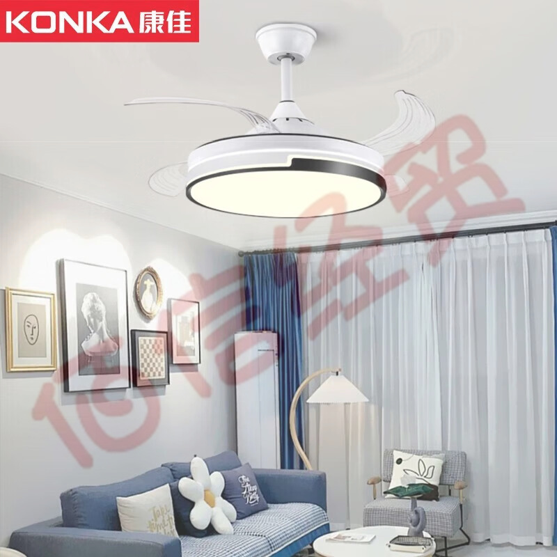 康佳(KONKA)大風(fēng)力風(fēng)扇燈搖頭送風(fēng)吸頂?shù)跎葻舨蛷d臥室客廳風(fēng)扇一體燈 吊扇燈黑白拼色 自營