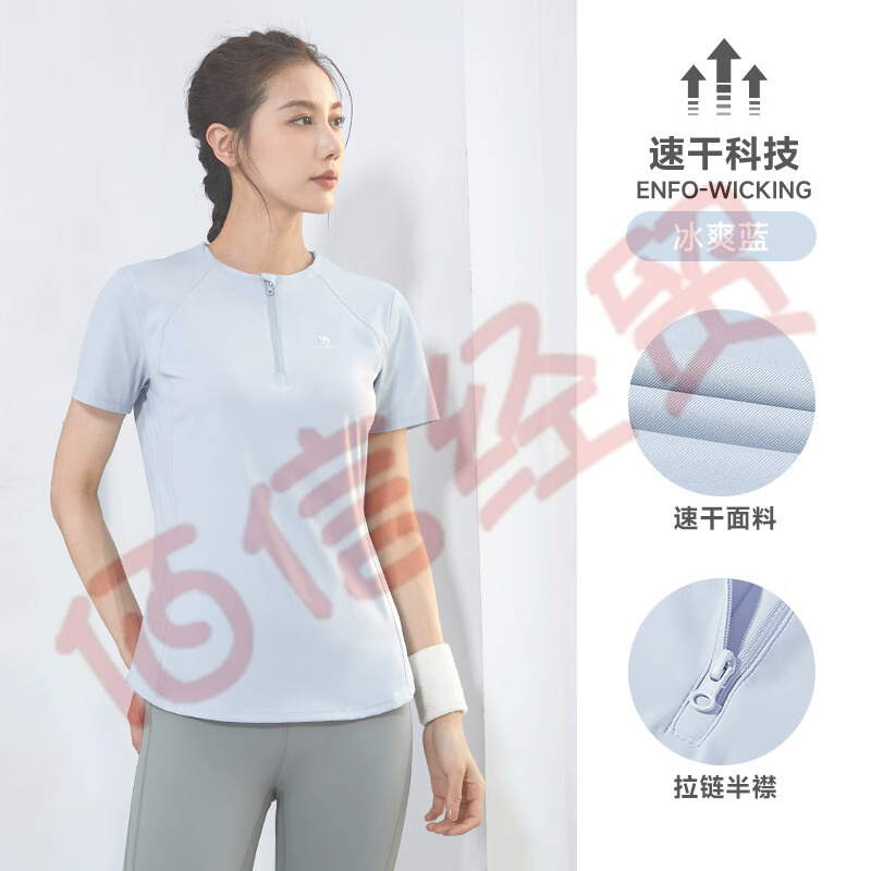 二澈雀運(yùn)動短袖T恤速干衣女士2023夏季跑步瑜伽健身訓(xùn)練服立領(lǐng)上衣 C23BABH393,冰爽藍(lán),女 S 自營
