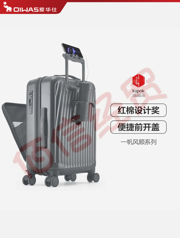 愛華仕前開蓋商務(wù)行李箱男拉桿箱可充電20英寸登機箱旅行箱女密碼箱6641 黑色、銀色 20英寸(登機箱) 自營