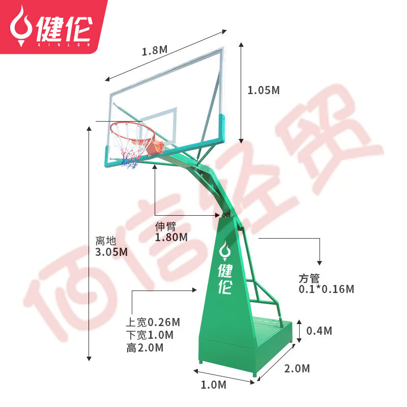 健倫成人平箱籃球架加大加厚箱體戶外標(biāo)準(zhǔn)籃球框移動三色1支免費(fèi)安裝