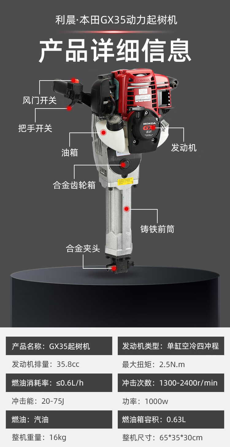 利晨汽油鎬挖樹機(jī)神器起樹機(jī)起苗機(jī)移樹機(jī)挖坑挖溝挖土本田GX35植樹機(jī) 自營