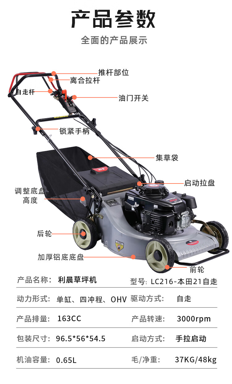 ¥4820.00利晨 割草機汽油機除草機草坪機修剪機打草機剪草機推草機修草機 HRJ216自走型21寸(含草袋)