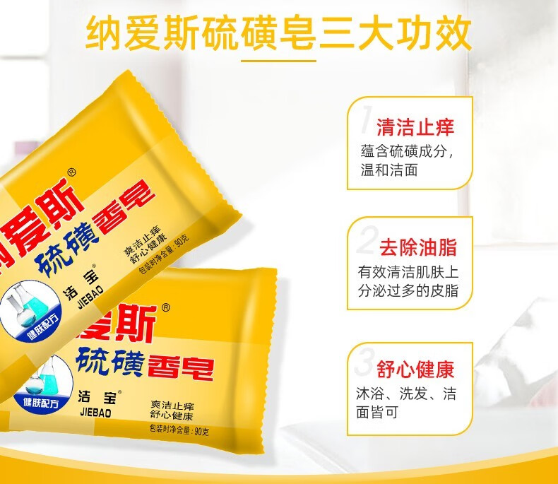 納愛斯香皂硫磺皂洗臉?biāo)幵?0g洗澡肥皂 納愛斯90g硫磺皂 自營