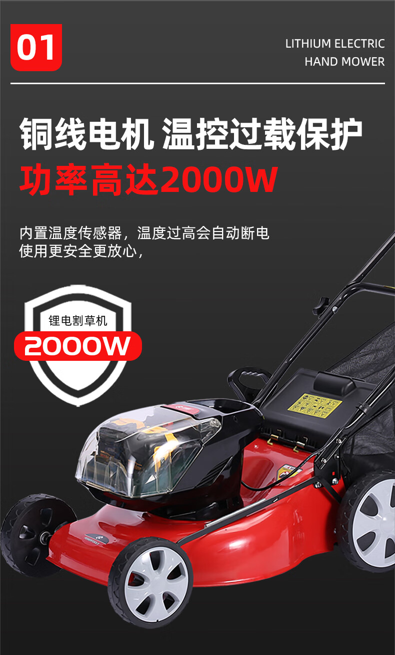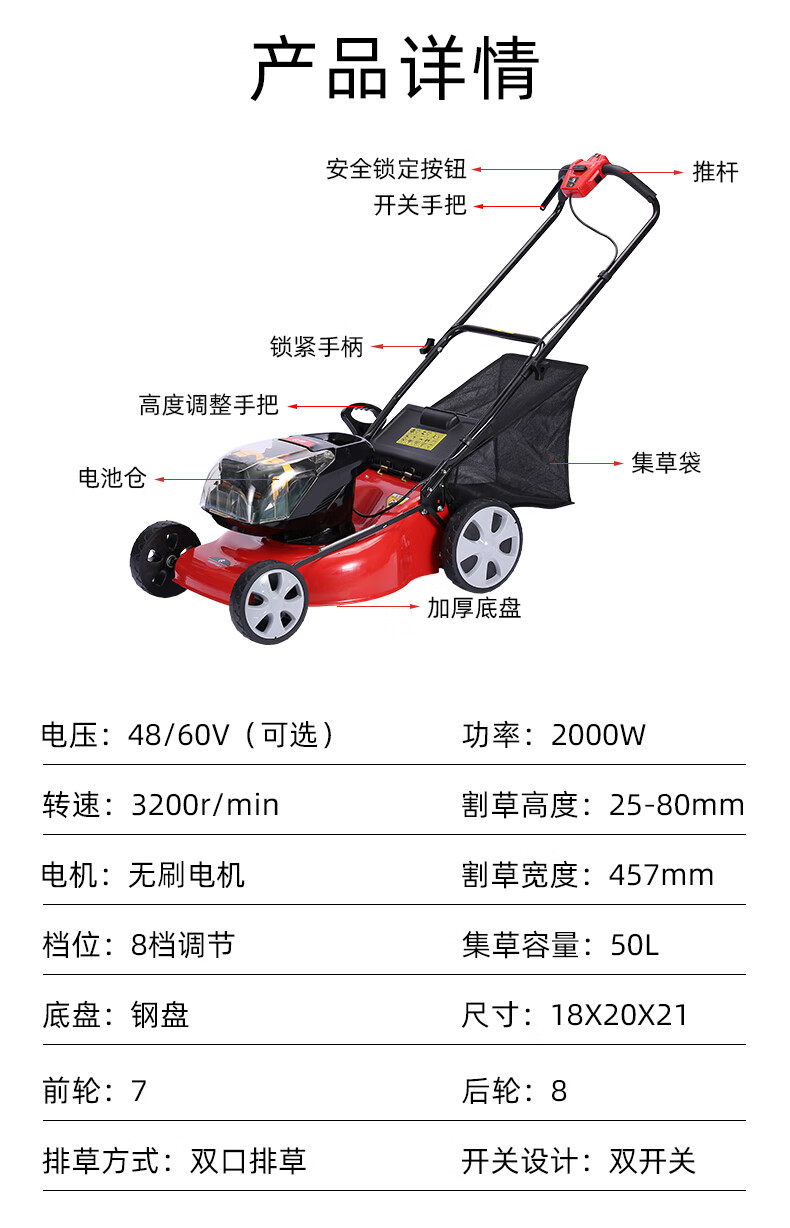 利晨 60V充電式電動(dòng)手推式剪草機(jī)割草機(jī)打草機(jī)草坪機(jī)家用推草機(jī)別墅用割草機(jī)園藝打理草坪修剪庭院園林修剪機(jī)(電動(dòng)草坪機(jī)-60V) 自營