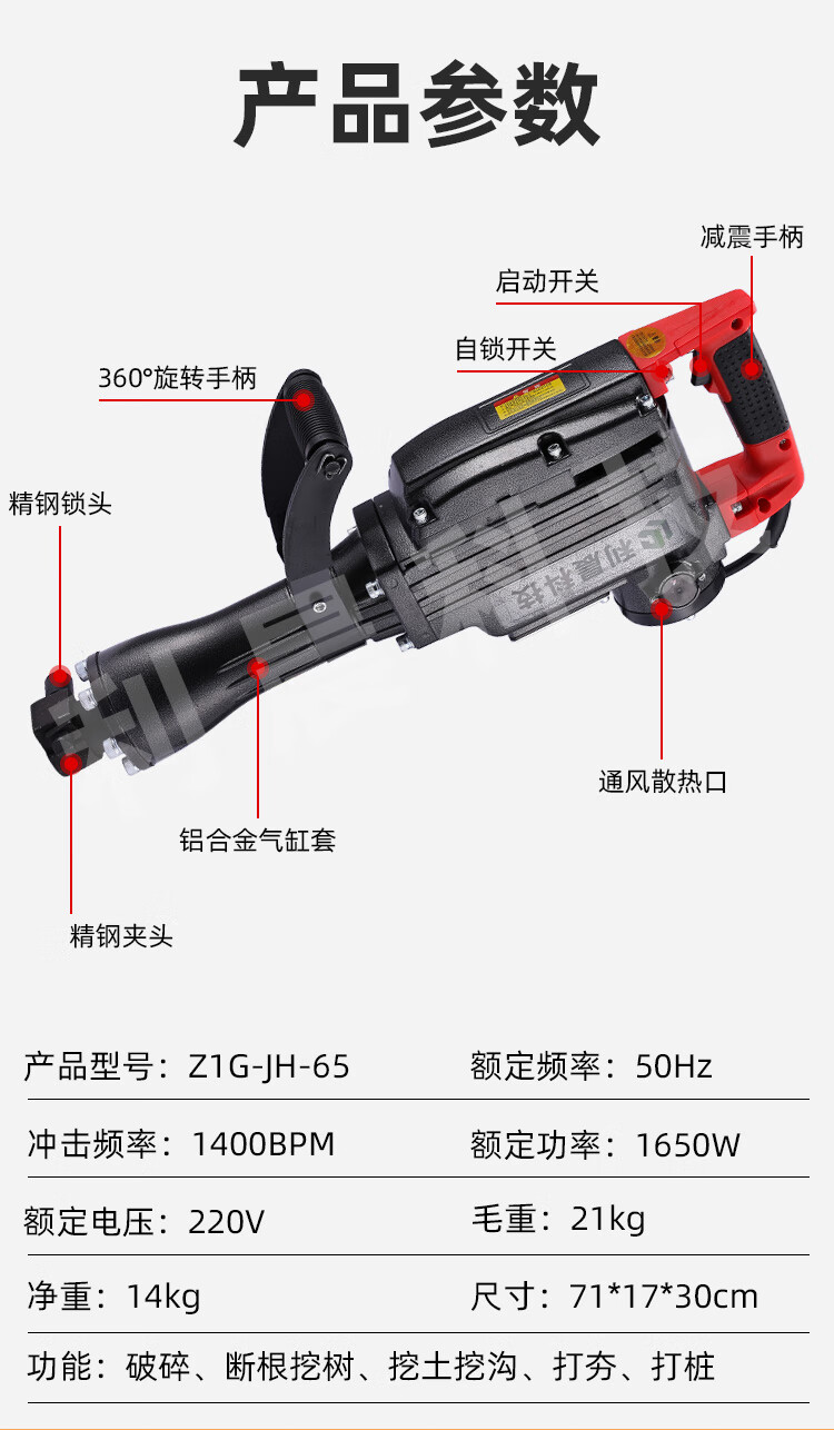 利晨小型電鎬電動挖樹機神器起樹機起苗機移樹機挖坑挖溝挖土植樹機(多功能黃金12件套) 自營