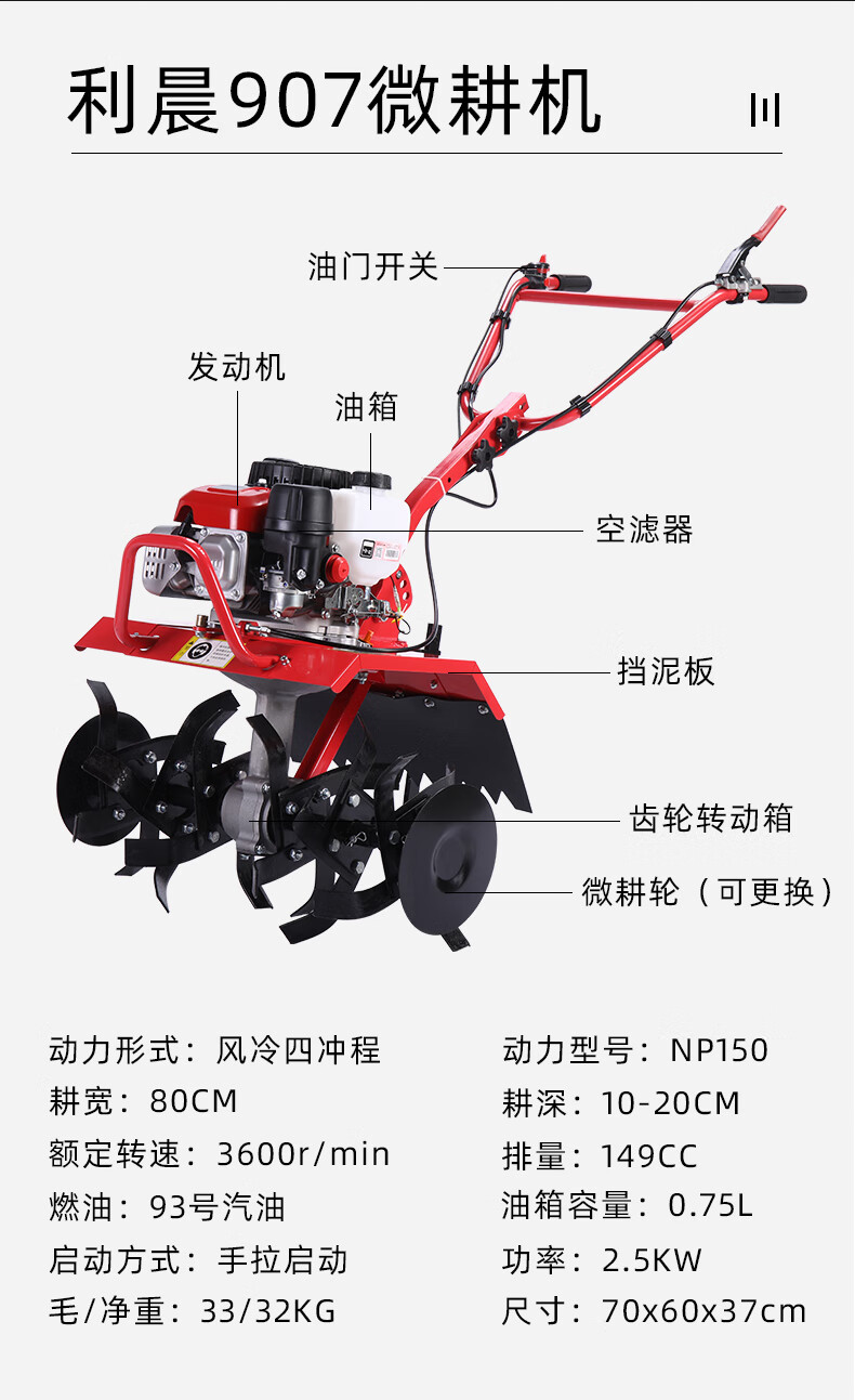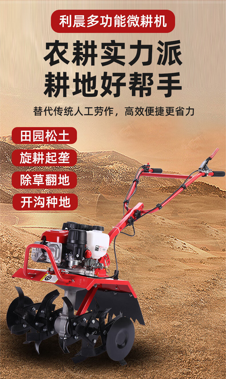 利晨宗申XP200汽油微耕機(jī)農(nóng)用犁地翻土松土開溝機(jī)耕田翻地耕地旋耕機(jī) 旋耕+輪胎+開溝+鐵輪+除草+水田