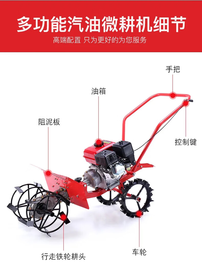 利晨宗申XP200汽油微耕機農(nóng)用犁地翻土松土開溝機耕田翻地耕地旋耕機 旋耕+輪胎+開溝+鐵輪+除草+水田