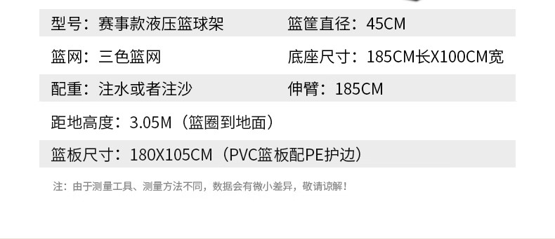 健倫健倫比賽訓練專用加厚加粗立柱升級款平箱籃球架/只