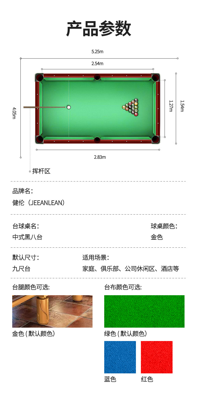 健倫(JEEANLEAN)JLAB127臺球桌標(biāo)準(zhǔn) 旋風(fēng)腿 8球黑八臺球桌 高質(zhì)量采購服務(wù)款 自營