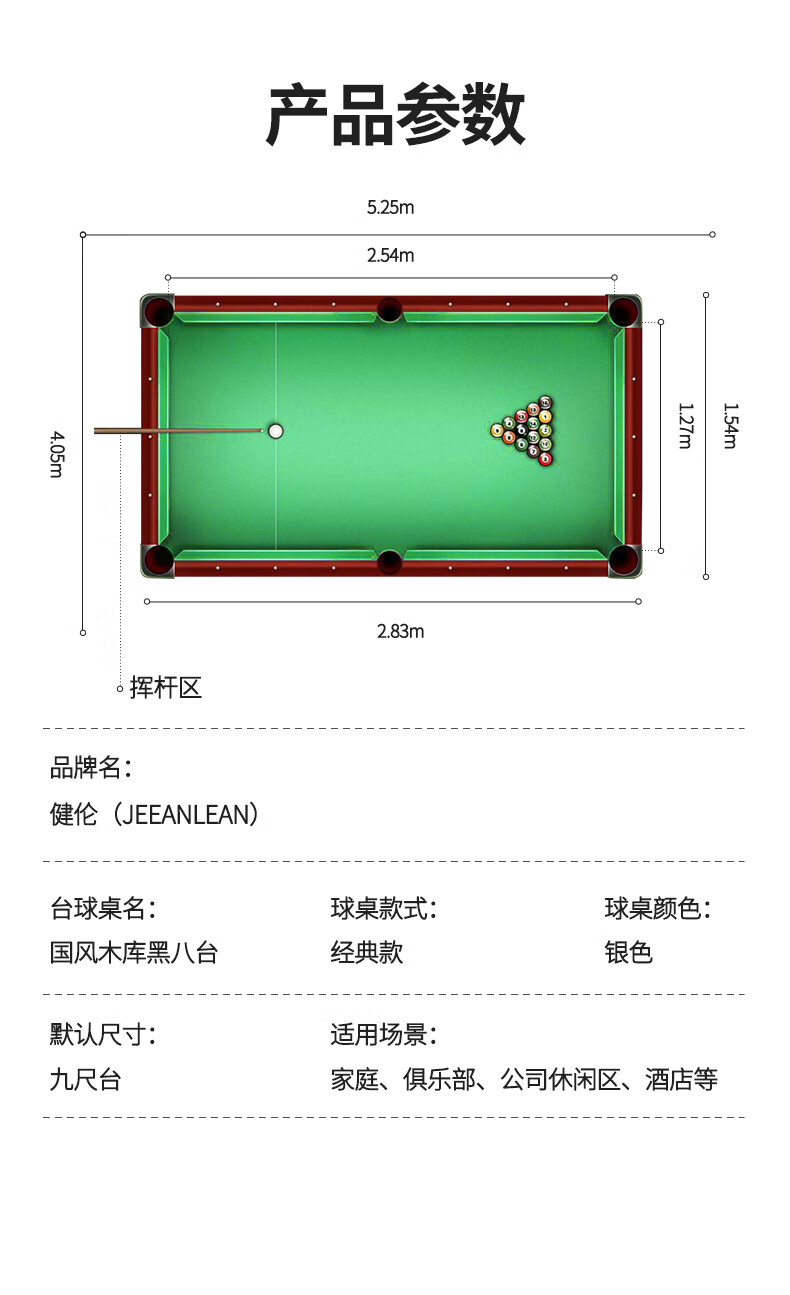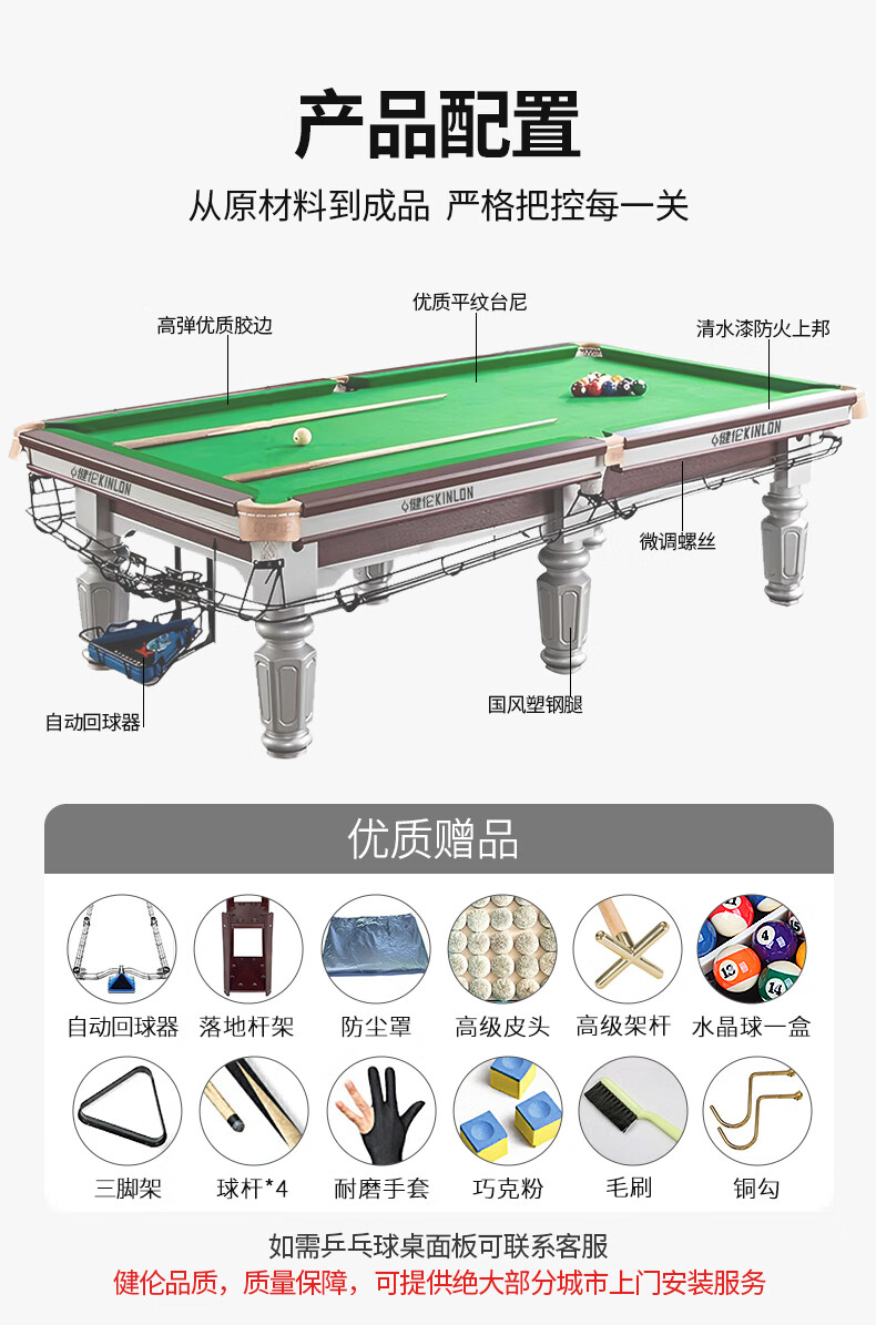健倫臺球桌中式黑8球房家用球桌成人標準美式黑8 JL-S11 自營