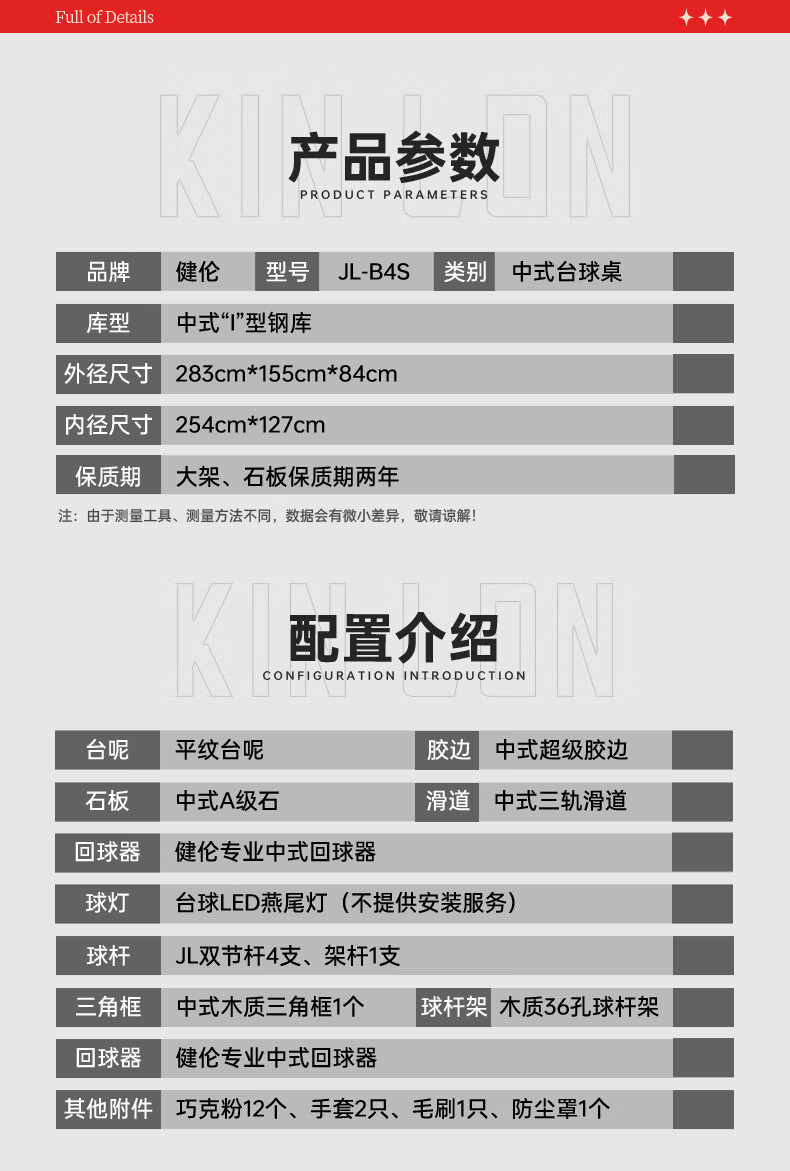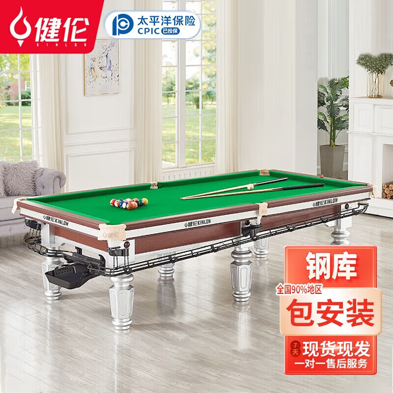 健倫(JEEANLEAN)JLAB133 臺球桌 鋼庫銀腿 九尺家用高端美式黑八 全包采購款 自營