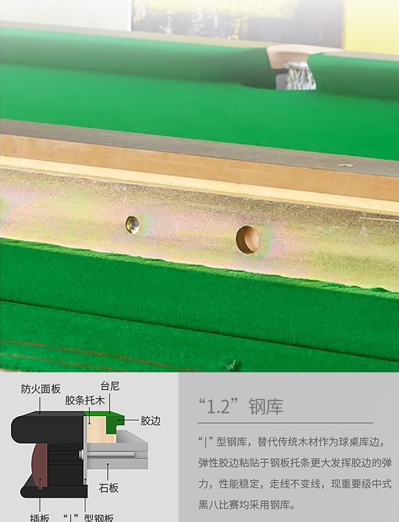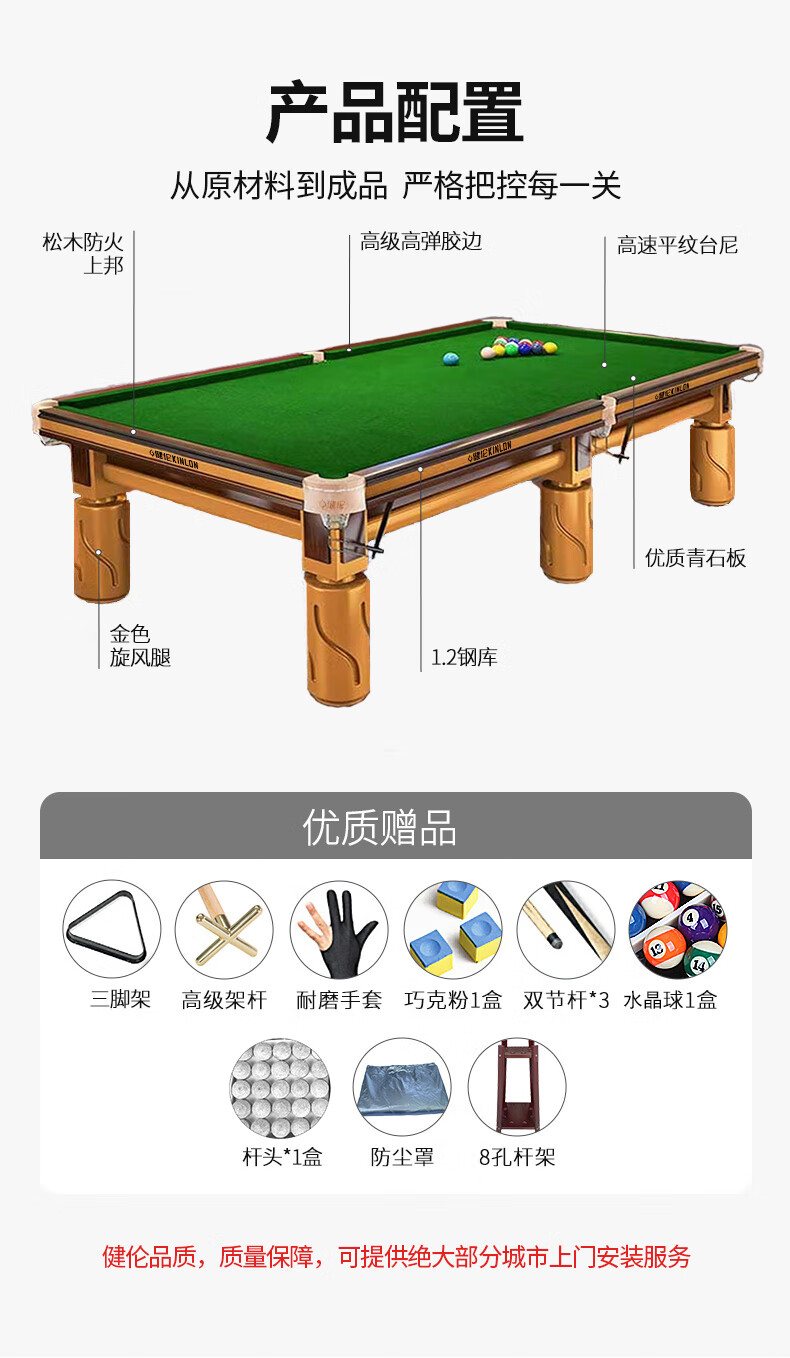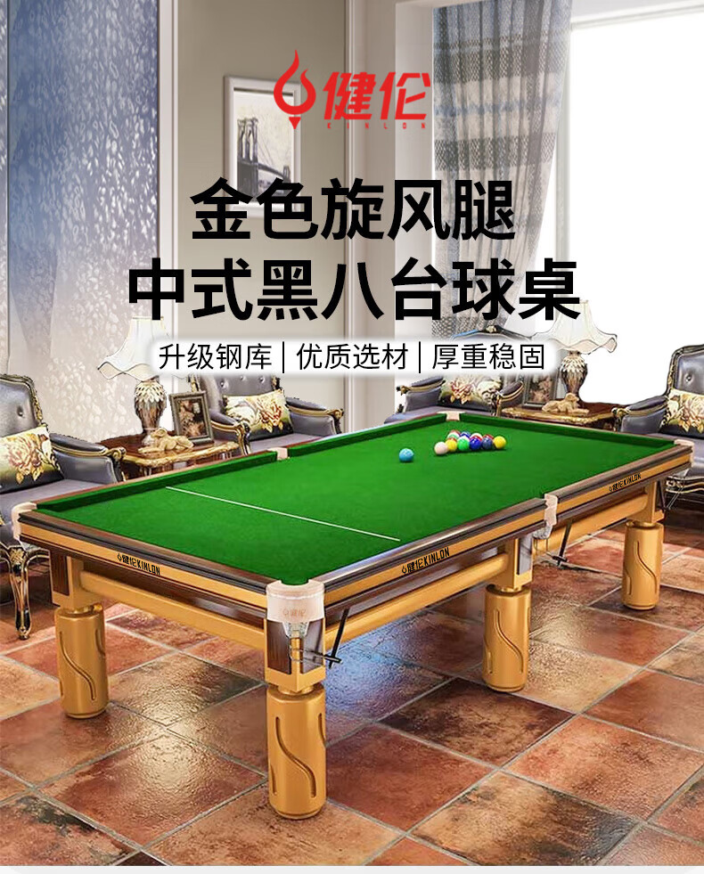健倫(JEEANLEAN)JLAB117黑八鋼庫臺(tái)球桌旋風(fēng)腿標(biāo)準(zhǔn)成人桌球臺(tái) 9尺臺(tái)高配版 自營