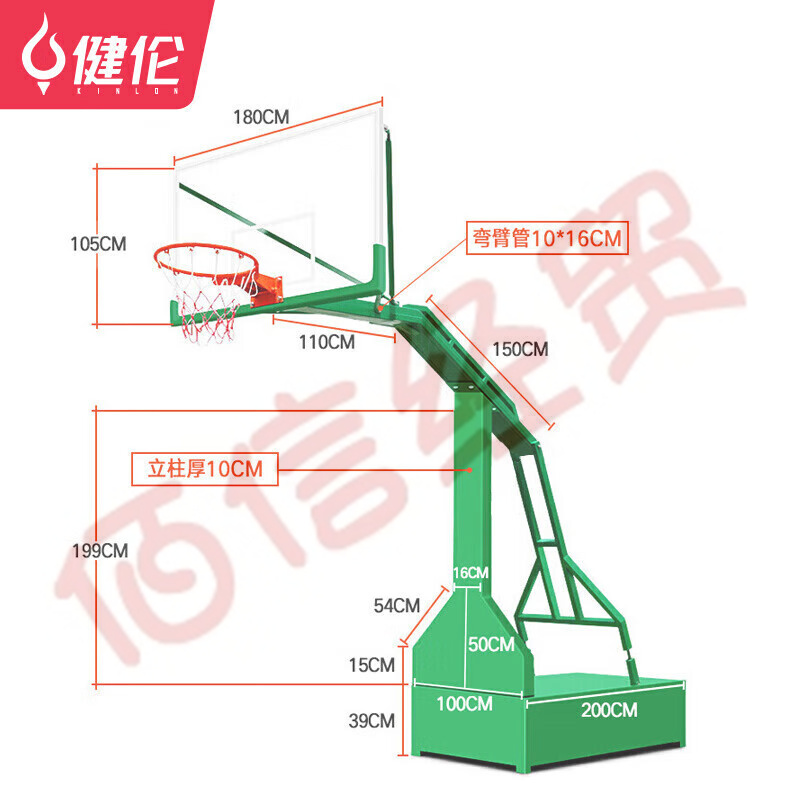 健倫(JEEANLEAN)JLAA130戶外籃球架標(biāo)準(zhǔn)成人訓(xùn)練移動平箱籃球架一支 自營