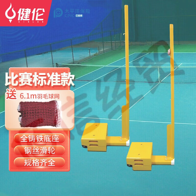 健倫羽毛球網(wǎng)架 移動(dòng)便攜訓(xùn)練比賽羽毛球網(wǎng)架子含羽毛球網(wǎng) 加厚款黃色 自營(yíng)