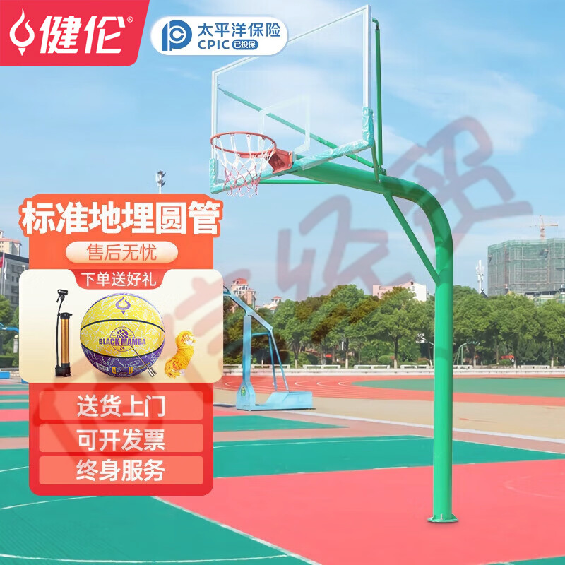 健倫(JEEANLEAN)JLAA119籃球架 標(biāo)準(zhǔn)成人戶外移動(dòng)地埋式籃球架 綠色圓管 自營(yíng)