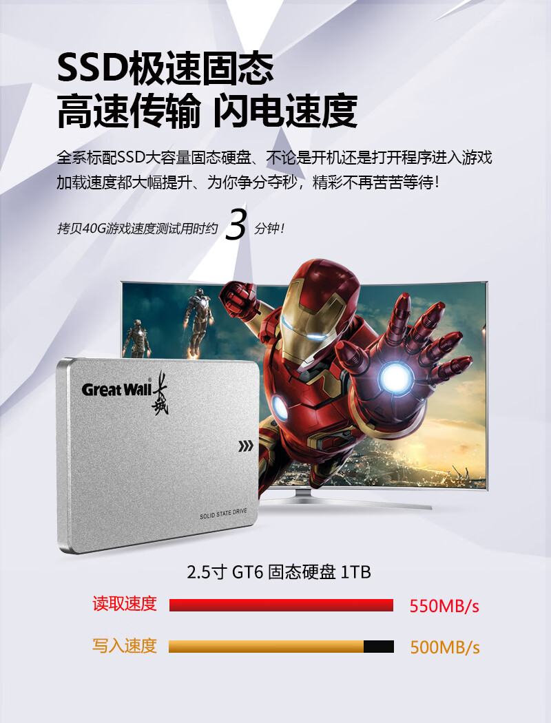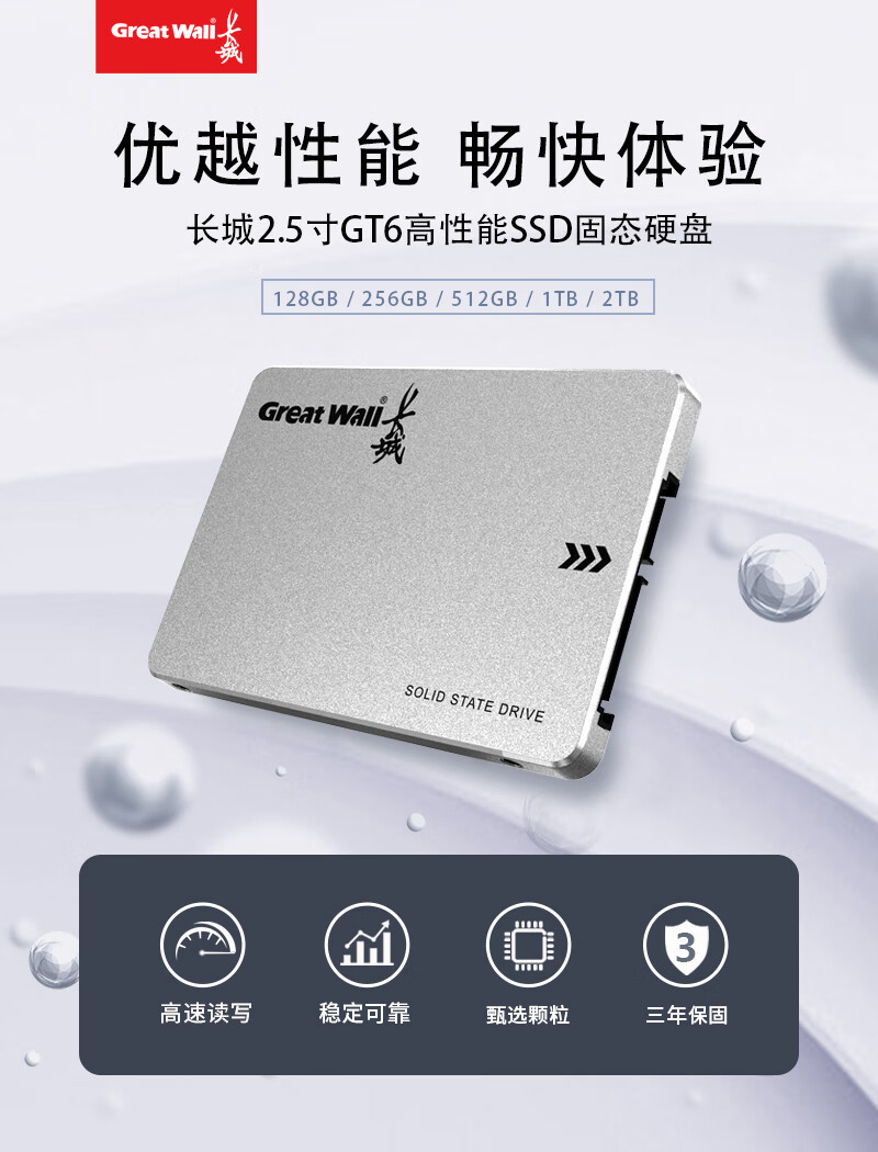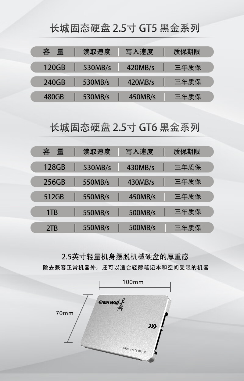 長(zhǎng)城(Great Wall)GT黑金系列 SSD固態(tài)硬盤(pán) SATA3.0接口臺(tái)式機(jī)筆記本固態(tài)硬盤(pán) GT6 旗艦版 1TB 黑金SATA3.0 自營(yíng)