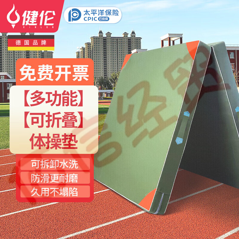 健倫(JEEANLEAN)JL7865 體操墊 學校專用體育墊子仰臥起坐墊跳高墊 皮革 布珍珠棉 180*60*5cm三折 自營