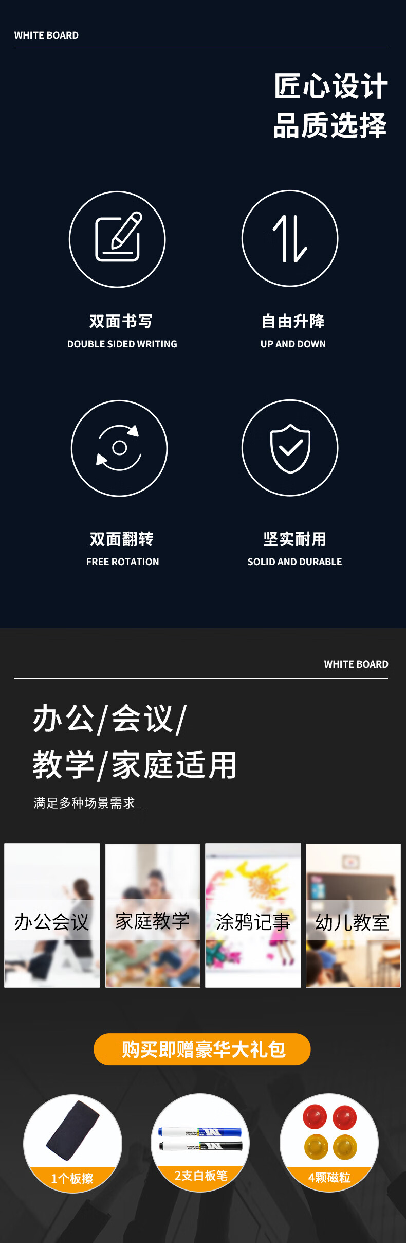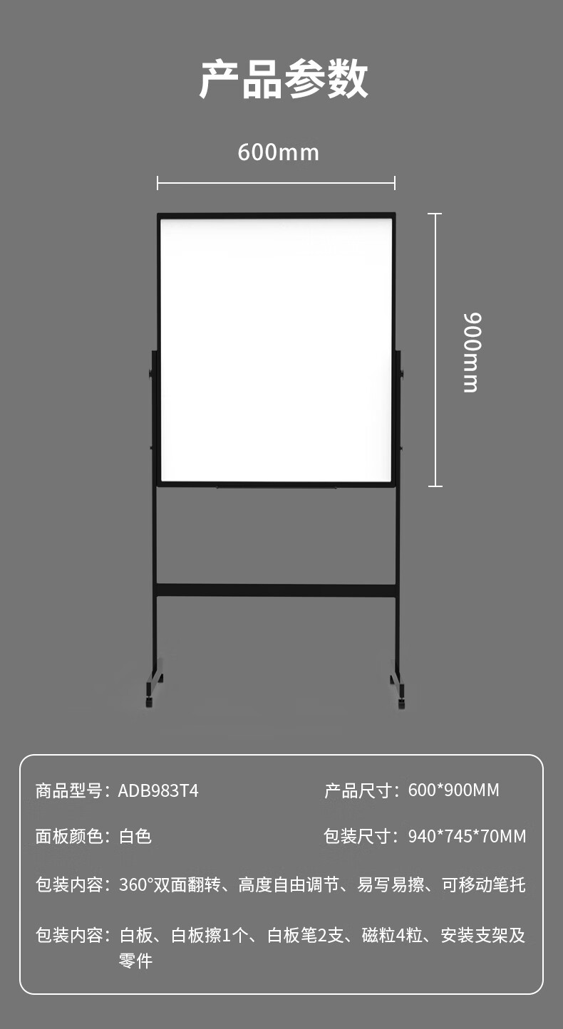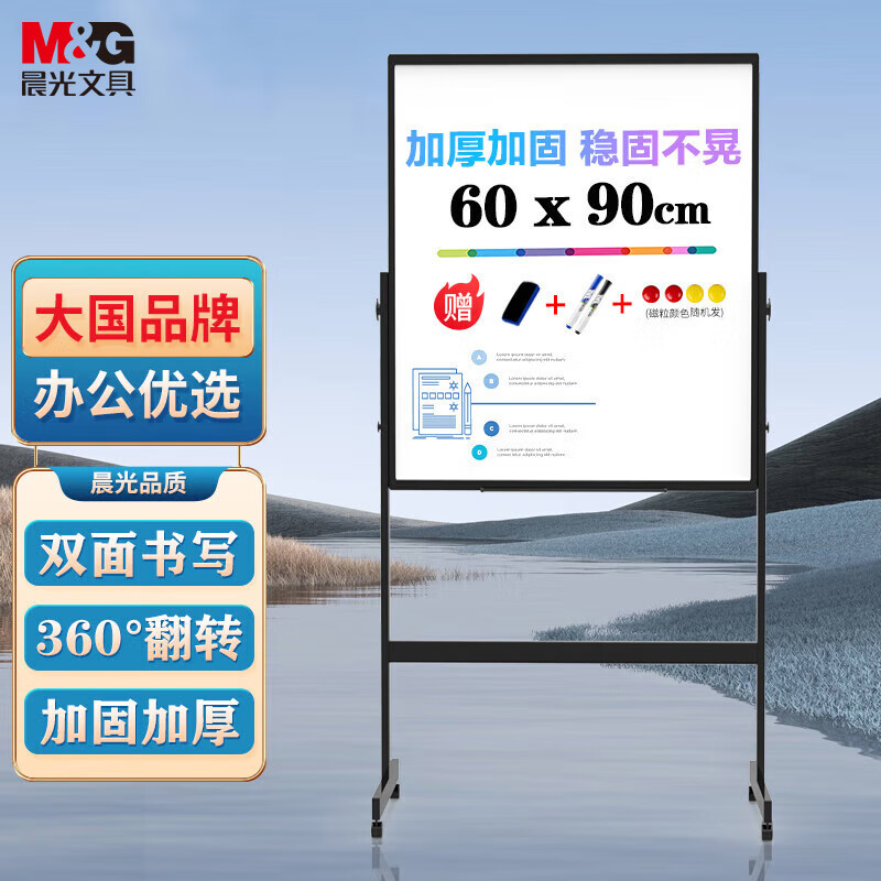 晨光(M&G) 60*90cmH型支架式白板 雙面翻轉(zhuǎn)書寫會議辦公教學(xué)家用可移動升降磁性白板黑板寫字板ADB983T4 自營