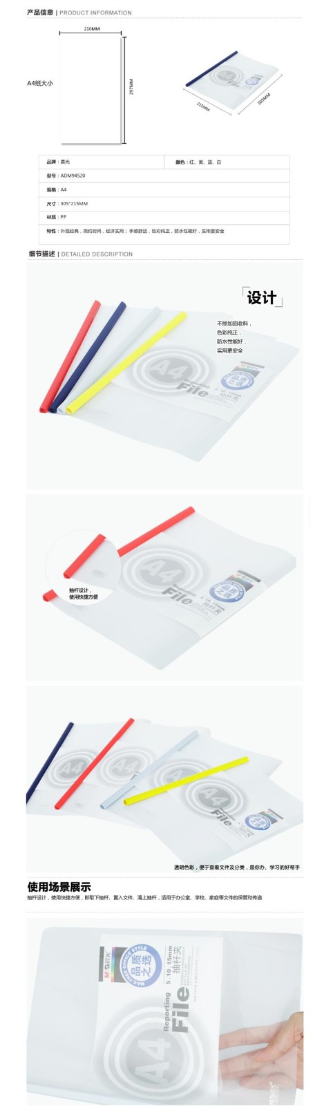 晨光(M&G) 抽桿夾辦公報告夾 資料整理收納文件夾拉桿夾學(xué)生考試收納 ADMN4279抽桿夾25mm白色5個/包 自營