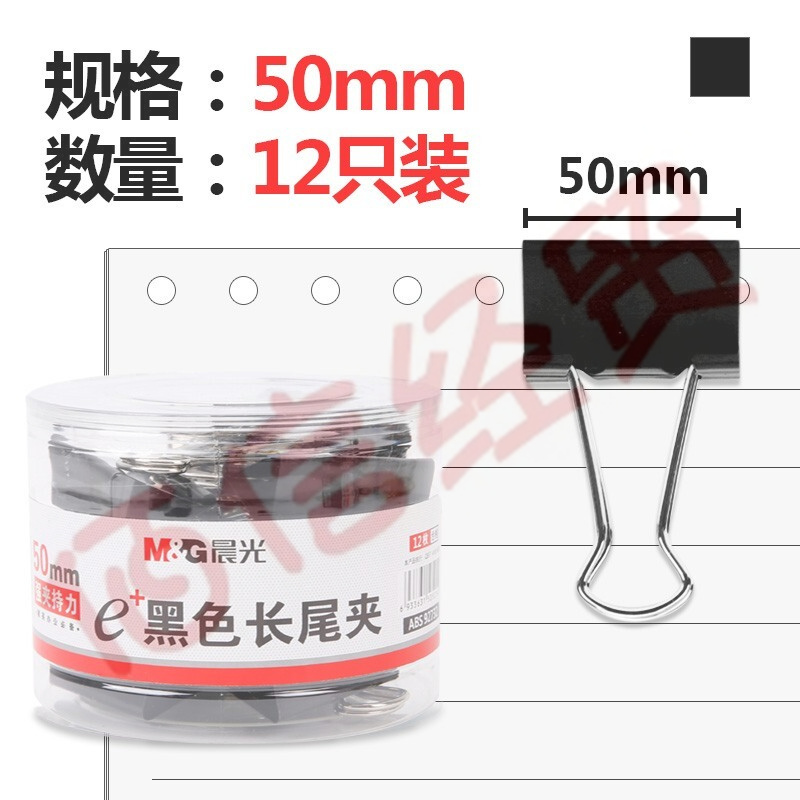 晨光(M&G)長尾夾大號夾子小號多功能書夾子試卷夾燕尾夾鳳尾夾文件夾子文具票夾辦公用品金屬小夾子固定 黑色-50mm(ABS92732)12只 自營