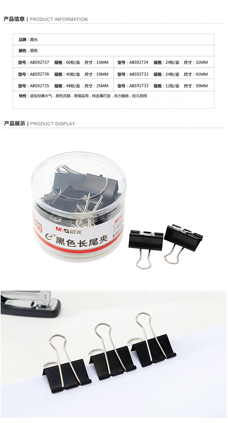 晨光(M&G)長尾夾大號夾子小號多功能書夾子試卷夾燕尾夾鳳尾夾文件夾子文具票夾辦公用品金屬小夾子固定 彩色-50mm(ABS92738)12只 自營