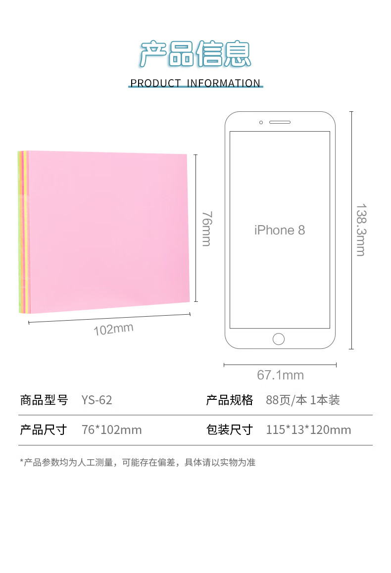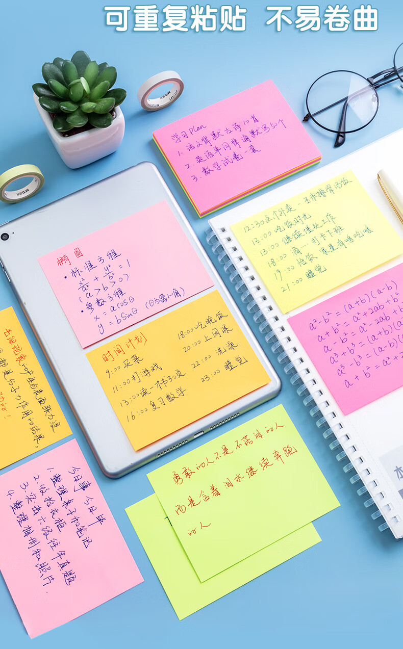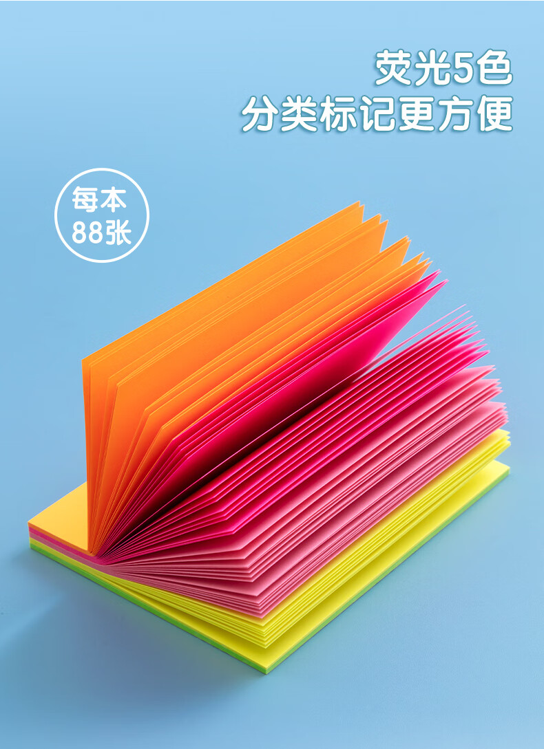 晨光(M&G)文具88張5色熒光便利貼 時(shí)尚辦公自粘便簽紙留言貼 76*102mm記事貼優(yōu)事貼便簽本子 單本裝YS-62 自營