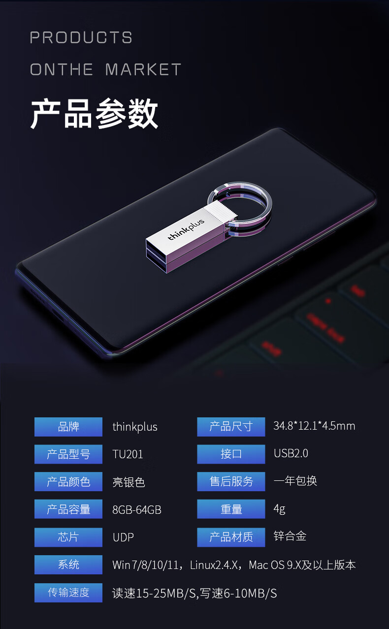 聯(lián)想u盤TU201帶環(huán)款迷你便攜多容量個性定制金屬刻字優(yōu)盤車載手機(jī)電腦通用 32G掛環(huán)版U盤 自營