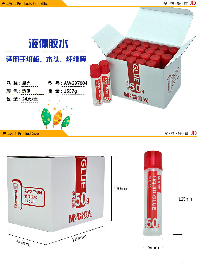 晨光(M&G) 文具50ml高粘度液體膠辦公快干耐用膠水學(xué)生手工黏膠(軟膠頭涂抹均勻) 50ml*24支AWG97004 自營(yíng)