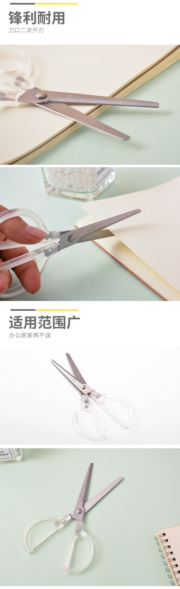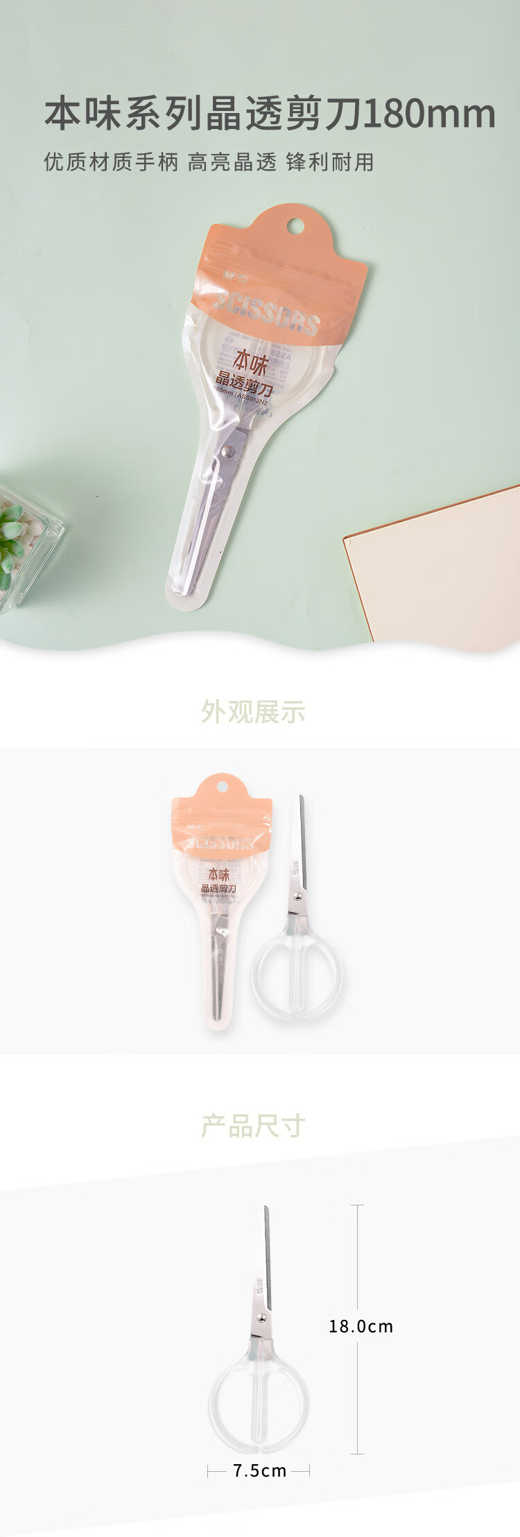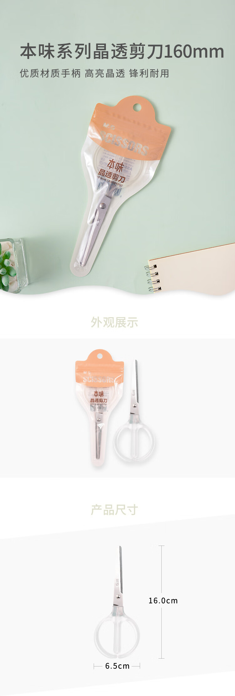 晨光 本味系列晶透剪刀160/180mm高亮晶透鋒利耐用辦公商務剪刀圓角剪刀頭手工裁剪ASS913N 1把【160mm】913N2 自營