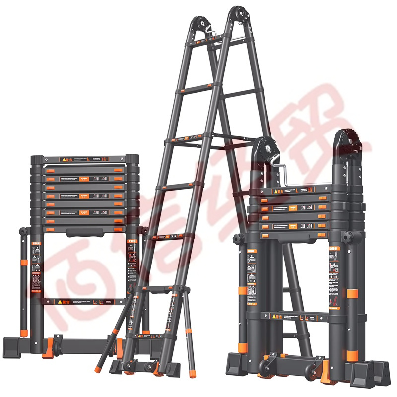 巴芬 德國品牌伸縮梯子家用折疊人字梯加厚多功能鋁合金工程升降樓梯 四腳單面直梯5.9米 自營