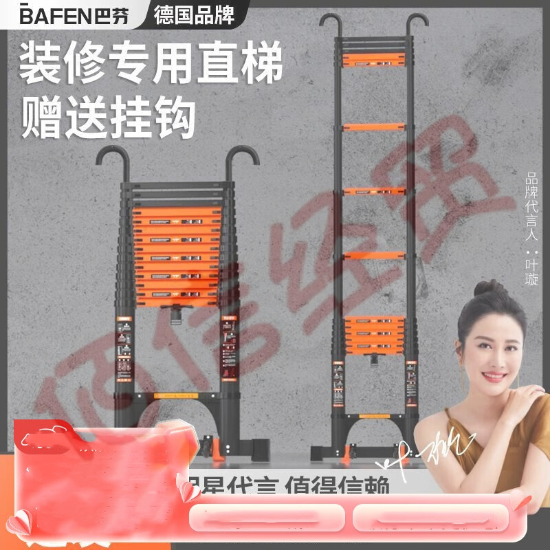 巴芬伸縮梯多功能梯子家用梯人字梯加厚鋁合金工程梯升降直梯折疊樓梯 單面直梯5.5米【靠墻使用+掛鉤】 自營(yíng)