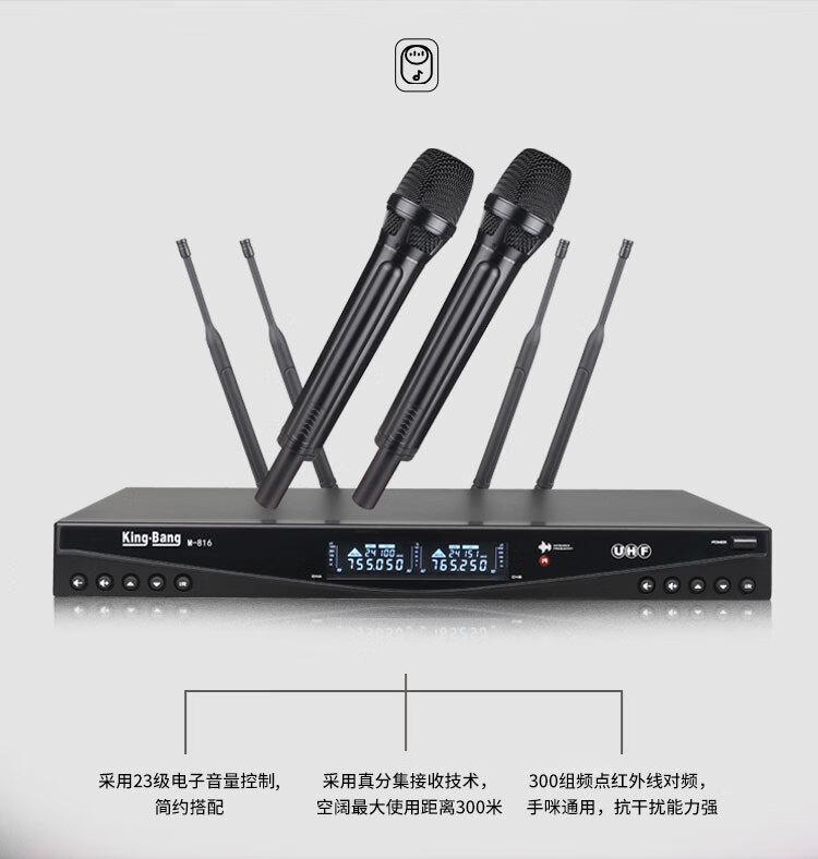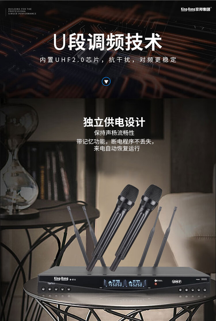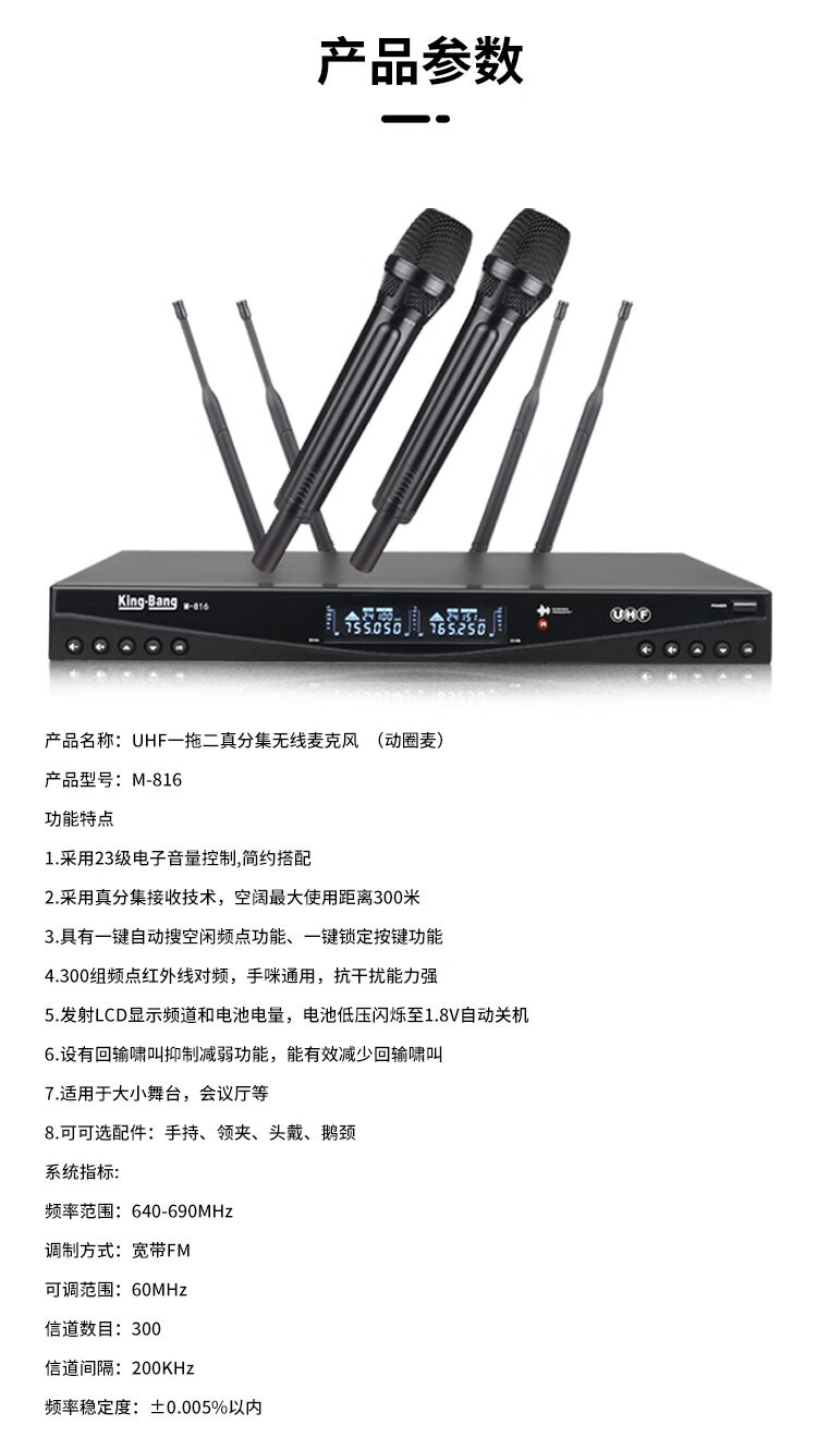 King-Bang京邦M-816UHF一拖二真分集無線麥克風(fēng)動圈麥 自營